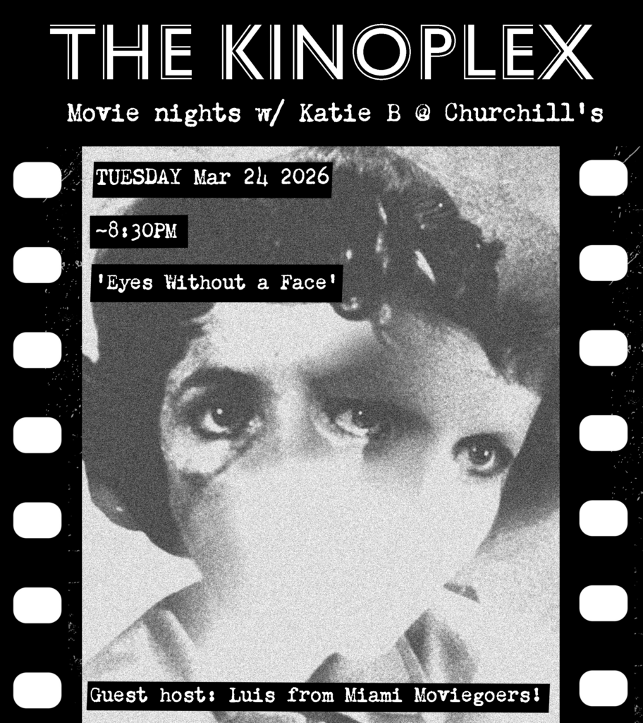 From Luis: “Eyes Without a Face is, in some respects, a horror film, but it is more so a deeply poetic and operatic melodrama—one that is both grand in its story elements and intimate in its portrayal of the central father and daughter pair. I have only ever watched this film at home by myself, and I can’t wait to experience it at Churchill’s with a crowd of moviegoers.”